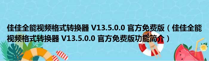 佳佳全能视频格式转换器 V13.5.0.0 官方免费版(佳佳全能视频格式转换器 V13.5.0.0 官方免费版功能简介)