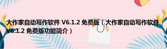 导读 大家好,关于大作家自动写作软件 V6 1 2 免费版,大作家自动写作软件 V6 1 2 免费版功能简介这个很多人还不知道,小勒来为大家解答以上的