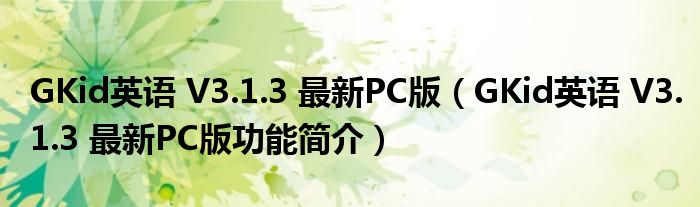 导读 大家好,关于GKid英语 V3 1 3 最新PC版,GKid英语 V3 1 3 最新PC版功能简介这个很多人还不知道,小勒来为大家解答以上的问题,现在让我们
