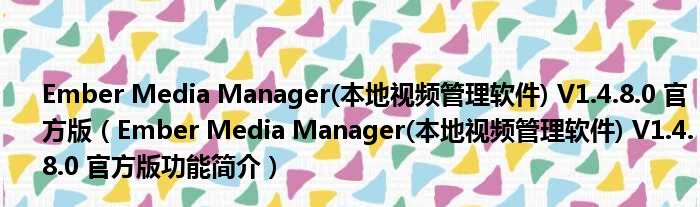 Ember Media Manager(本地视频管理软件) V1.4.8.0 官方版(Ember Media Manager(本地视频管理软件) V1.4.8.0 官方版功能简介)