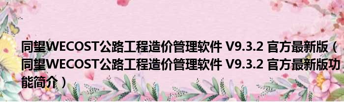 同望WECOST公路工程造价管理软件 V9.3.2 官方最新版(同望WECOST公路工程造价管理软件 V9.3.2 官方最新版功能简介)