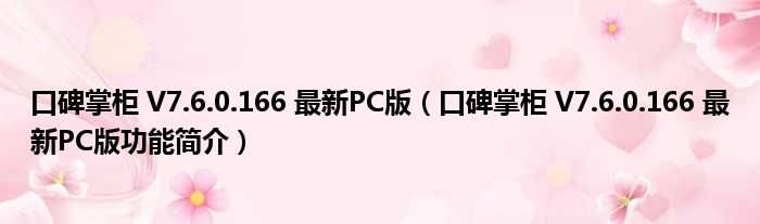 口碑掌柜 V7.6.0.166 最新PC版(口碑掌柜 V7.6.0.166 最新PC版功能简介)