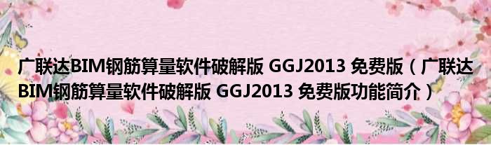 广联达BIM钢筋算量软件破解版 GGJ2013 免费版(广联达BIM钢筋算量软件破解版 GGJ2013 免费版功能简介)