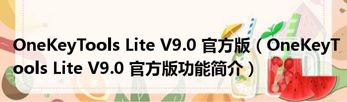 OneKeyTools Lite V9.0 官方版(OneKeyTools Lite V9.0 官方版功能简介)