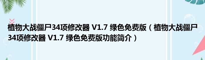 植物大战僵尸34项修改器 V1.7 绿色免费版(植物大战僵尸34项修改器 V1.7 绿色免费版功能简介)