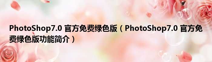 PhotoShop7.0 官方免费绿色版(PhotoShop7.0 官方免费绿色版功能简介)