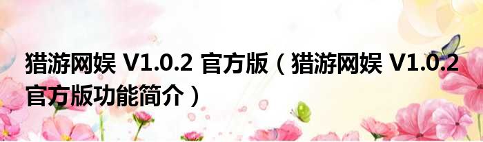 猎游网娱 V1.0.2 官方版(猎游网娱 V1.0.2 官方版功能简介)