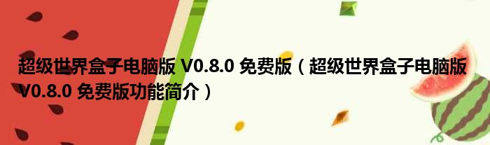 导读 大家好,关于超级世界盒子电脑版 V0 8 0 免费版,超级世界盒子电脑版 V0 8 0 免费版功能简介这个很多人还不知道,小勒来为大家解答以上的