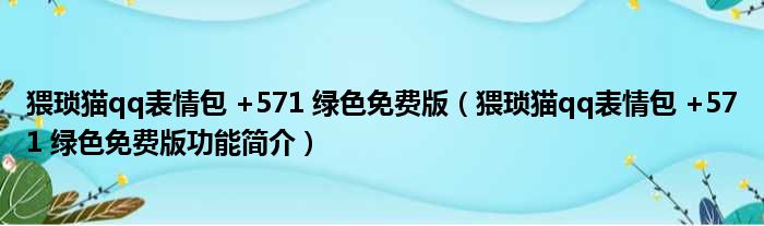 导读 大家好,关于猥琐猫qq表情包 +571 绿色免费版,猥琐猫qq表情包 +571 绿色免费版功能简介这个很多人还不知道,小勒来为大家解答以上的问题