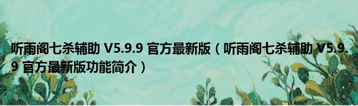 听雨阁七杀辅助 V5.9.9 官方最新版(听雨阁七杀辅助 V5.9.9 官方最新版功能简介)