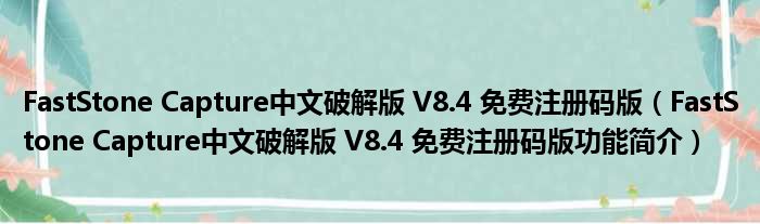 FastStone Capture中文破解版 V8.4 免费注册码版(FastStone Capture中文破解版 V8.4 免费注册码版功能简介)
