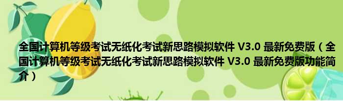导读 大家好,关于全国计算机等级考试无纸化考试新思路模拟软件 V3 0 最新免费版,全国计算机等级考试无纸化考试新思路模拟软件 V3 0 最新免