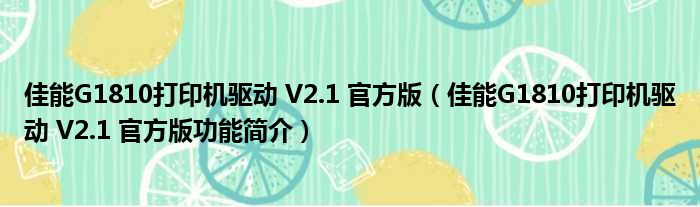 佳能G1810打印机驱动 V2.1 官方版(佳能G1810打印机驱动 V2.1 官方版功能简介)