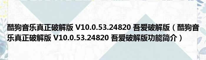 酷狗音乐真正破解版 V10.0.53.24820 吾爱破解版(酷狗音乐真正破解版 V10.0.53.24820 吾爱破解版功能简介)