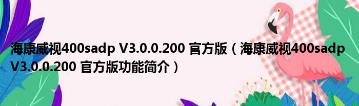 海康威视400sadp V3.0.0.200 官方版(海康威视400sadp V3.0.0.200 官方版功能简介)