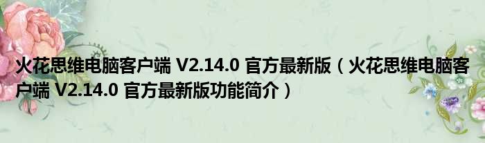 火花思维电脑客户端 V2.14.0 官方最新版(火花思维电脑客户端 V2.14.0 官方最新版功能简介)