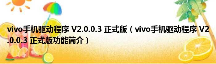 vivo手机驱动程序 V2.0.0.3 正式版(vivo手机驱动程序 V2.0.0.3 正式版功能简介)