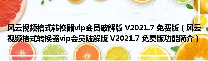 风云视频格式转换器vip会员破解版 V2021.7 免费版(风云视频格式转换器vip会员破解版 V2021.7 免费版功能简介)