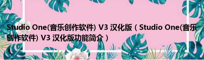 大家好,关于Studio One(音乐创作软件) V3 汉化版,Studio One(音乐创作软件) V3 汉化版功能简介这个很多人还不知道,小勒来为大家解答以上的问题,现在让我们一起来看看吧!