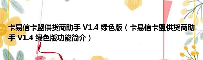 卡易信卡盟供货商助手 V1.4 绿色版(卡易信卡盟供货商助手 V1.4 绿色版功能简介)