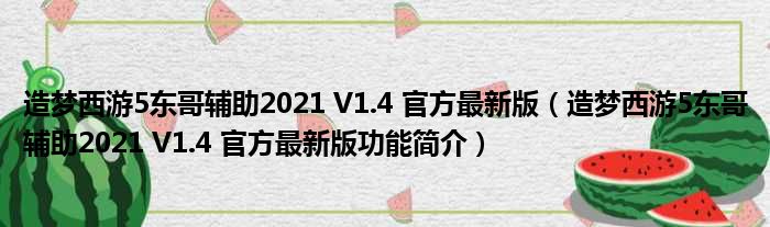 导读 大家好,关于造梦西游5东哥辅助2021 V1 4 官方最新版,造梦西游5东哥辅助2021 V1 4 官方最新版功能简介这个很多人还不知道,小勒来为大家