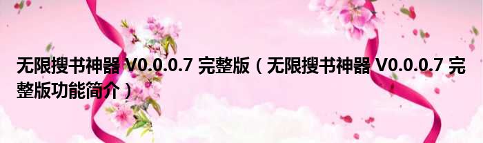 无限搜书神器 V0.0.0.7 完整版(无限搜书神器 V0.0.0.7 完整版功能简介)