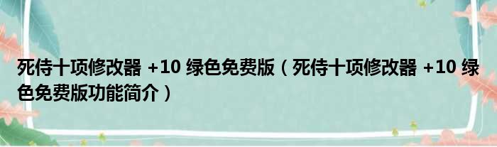 导读 大家好,关于死侍十项修改器 +10 绿色免费版,死侍十项修改器 +10 绿色免费版功能简介这个很多人还不知道,小勒来为大家解答以上的问题,