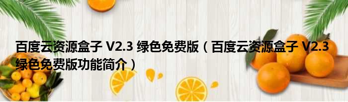 百度云资源盒子 V2.3 绿色免费版(百度云资源盒子 V2.3 绿色免费版功能简介)