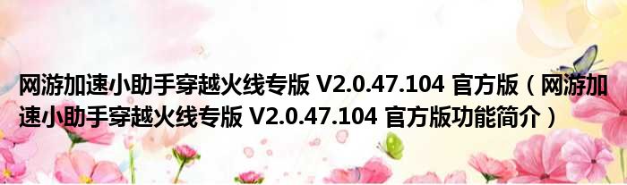 网游加速小助手穿越火线专版 V2.0.47.104 官方版(网游加速小助手穿越火线专版 V2.0.47.104 官方版功能简介)