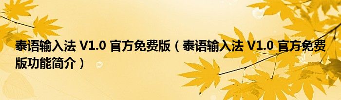 泰语输入法 V1.0 官方免费版(泰语输入法 V1.0 官方免费版功能简介)