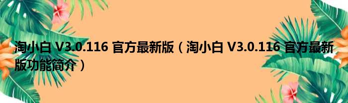 淘小白 V3.0.116 官方最新版(淘小白 V3.0.116 官方最新版功能简介)