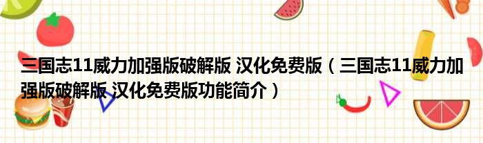三国志11威力加强版破解版 汉化免费版(三国志11威力加强版破解版 汉化免费版功能简介)