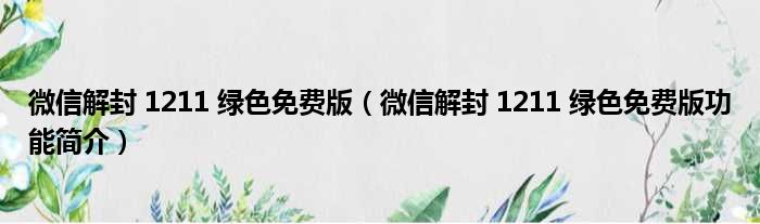 微信解封 1211 绿色免费版(微信解封 1211 绿色免费版功能简介)