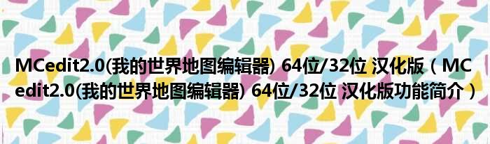 MCedit2.0(我的世界地图编辑器) 64位/32位 汉化版(MCedit2.0(我的世界地图编辑器) 64位/32位 汉化版功能简介)