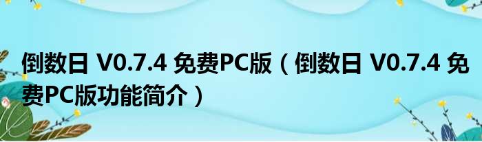 倒数日 V0.7.4 免费PC版(倒数日 V0.7.4 免费PC版功能简介)