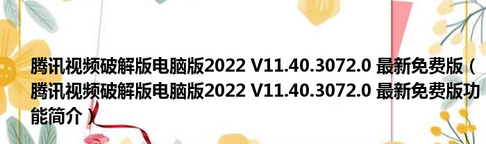 腾讯视频破解版电脑版2022 V11.40.3072.0 最新免费版(腾讯视频破解版电脑版2022 V11.40.3072.0 最新免费版功能简介)