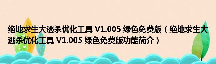 绝地求生大逃杀优化工具 V1.005 绿色免费版(绝地求生大逃杀优化工具 V1.005 绿色免费版功能简介)