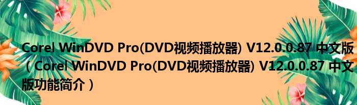 Corel WinDVD Pro(DVD视频播放器) V12.0.0.87 中文版(Corel WinDVD Pro(DVD视频播放器) V12.0.0.87 中文版功能简介)