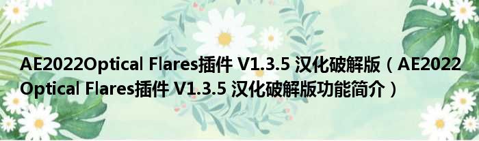 AE2022Optical Flares插件 V1.3.5 汉化破解版(AE2022Optical Flares插件 V1.3.5 汉化破解版功能简介)