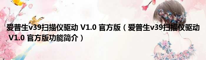 爱普生v39扫描仪驱动 V1.0 官方版(爱普生v39扫描仪驱动 V1.0 官方版功能简介)