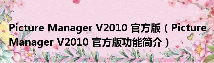 Picture Manager V2010 官方版(Picture Manager V2010 官方版功能简介)