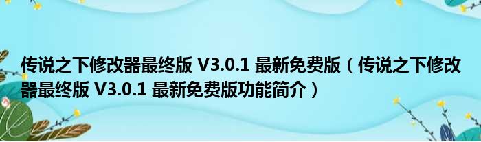 传说之下修改器最终版 V3.0.1 最新免费版(传说之下修改器最终版 V3.0.1 最新免费版功能简介)