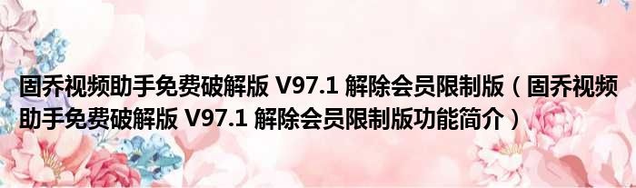 固乔视频助手免费破解版 V97.1 解除会员限制版(固乔视频助手免费破解版 V97.1 解除会员限制版功能简介)