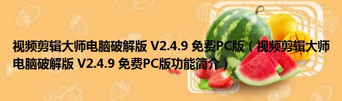 视频剪辑大师电脑破解版 V2.4.9 免费PC版(视频剪辑大师电脑破解版 V2.4.9 免费PC版功能简介)