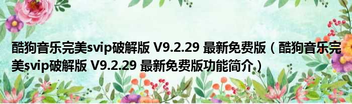 酷狗音乐完美svip破解版 V9.2.29 最新免费版(酷狗音乐完美svip破解版 V9.2.29 最新免费版功能简介)