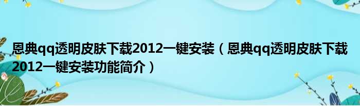 恩典qq透明皮肤下载2012一键安装(恩典qq透明皮肤下载2012一键安装功能简介)