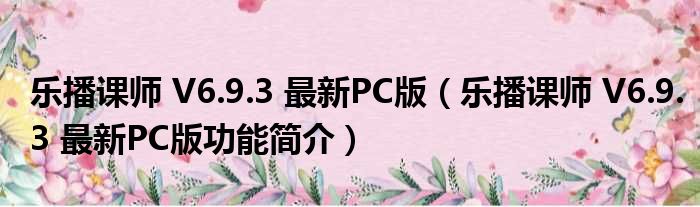 乐播课师 V6.9.3 最新PC版(乐播课师 V6.9.3 最新PC版功能简介)