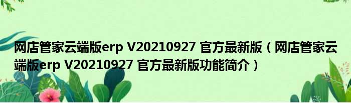 网店管家云端版erp V20210927 官方最新版(网店管家云端版erp V20210927 官方最新版功能简介)