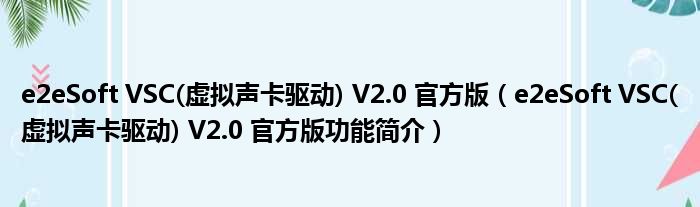 e2eSoft VSC(虚拟声卡驱动) V2.0 官方版(e2eSoft VSC(虚拟声卡驱动) V2.0 官方版功能简介)