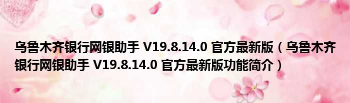 乌鲁木齐银行网银助手 V19.8.14.0 官方最新版(乌鲁木齐银行网银助手 V19.8.14.0 官方最新版功能简介)